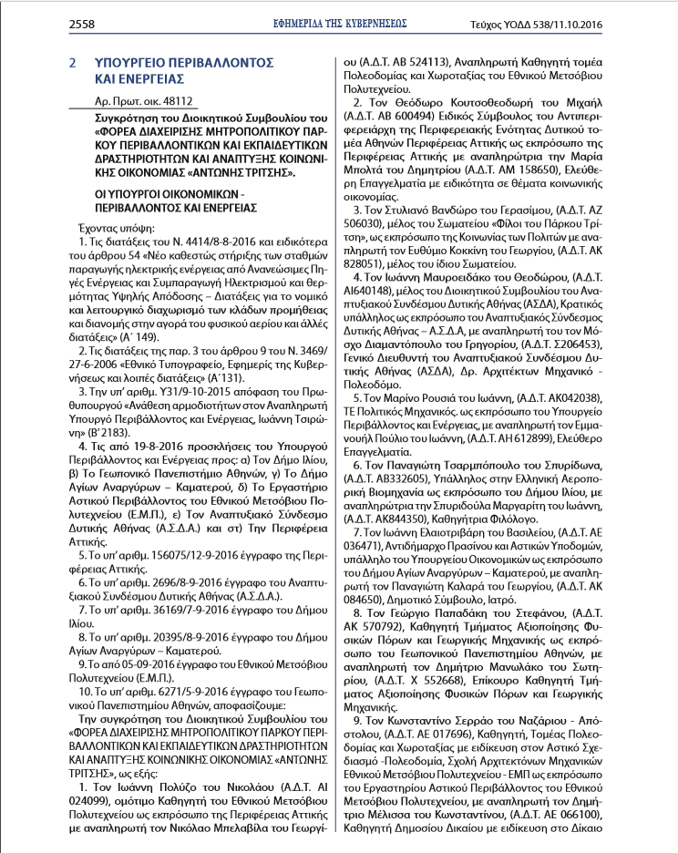 ΑΥΤΗ ΕΙΝΑΙ Η ΚΑΙΝΟΥΡΓΙΑ ΔΙΟΙΚΗΣΗ ΤΟΥ ΦΟΡΕΑ ΤΟΥ ΠΑΡΚΟΥ <ΤΡΙΤΣΗΣ>